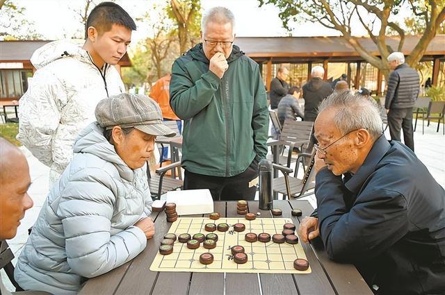 一进公园,义涵麻利地脱了外套,像只欢快的小松鼠蹿进儿童游乐区,和小伙伴们围着滑梯玩起“追逐大战”,爷爷老林则熟门熟路地踱到一旁的景观长廊,摆上茶具,掏出袋子里的棋盘,铺开“楚河汉界”,在暖阳下与老友惬意对弈。