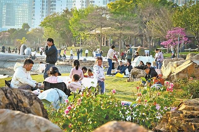 事实上,这片“圈粉”的北湖公园,只是海沧湖景观提升工程的一个“美丽切片”。近年来,海沧湖景观提升工程分三期进行,不仅对沿湖交通进行全面梳理、给湖岸绿化带“换新装”,还增设了5处便民泡茶点、5处儿童游乐区、12套智能健身设施,串联沿湖11个公园节点,贯通10公里环湖步道。